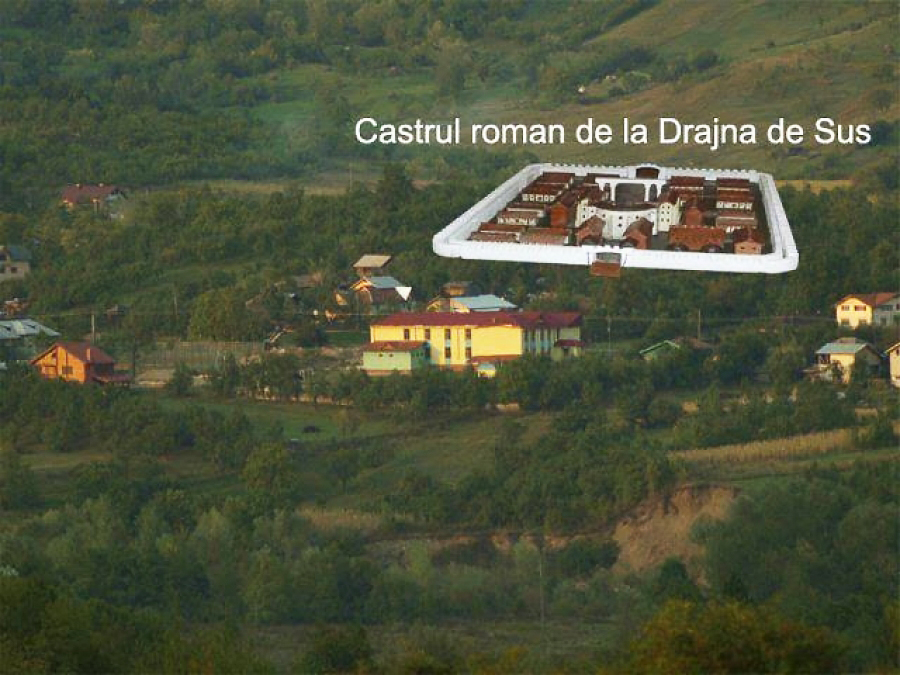 Castrul roman este situat in sud-estul Drajnei de Sus, pe platoul dealului Grădiştea, la altitudine de 475m, separate pe linia nord-sud de valea râului Drajna şi pârâul Ogretin. Castrul intră în literatura de specialitate după 1888, prin publicarea de către Gr. Tocilescu a unor serii de ştampile cu numele unităţilor militare cantonate acolo. Meritul descoperirii castrului îi revine lui M.D. Bazilescu profesor la Drajna. În anul 1883 acesta înştiinţa Ministerul Instrucţiei Publice despre descoperirile făcute în cursul muncilor agricole, materiale pe care le va preda Muzeului Naţional de Antichităţi.