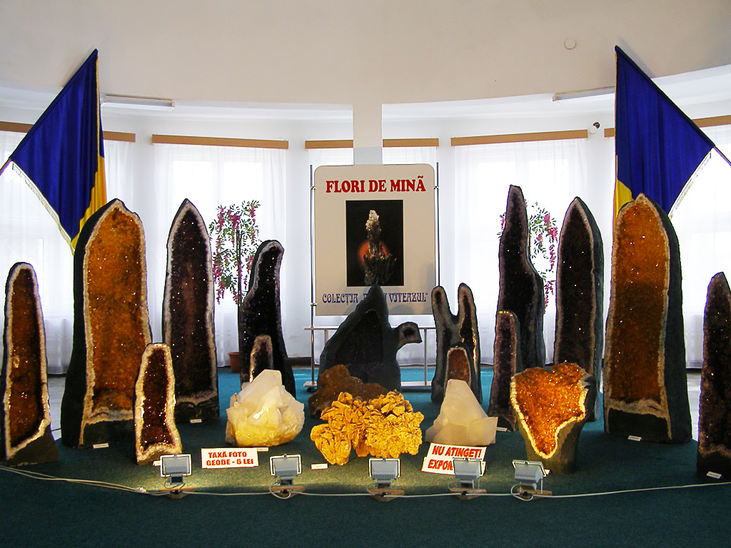 În cele 22 de vitrine sunt expuse 170 de piese, grupate pe criterii ştiinţifice riguroase şi pe moderne principii muzeistice. La dispoziţia vizitatorilor se află un sistem informatizat care oferă şi alte date despre miraculosul domeniu al florilor de mină. Publicul vizitator poate achiziţiona diverse obiecte de podoabă, realizate din cristale, precum şi minicolecţii de flori de mină.
